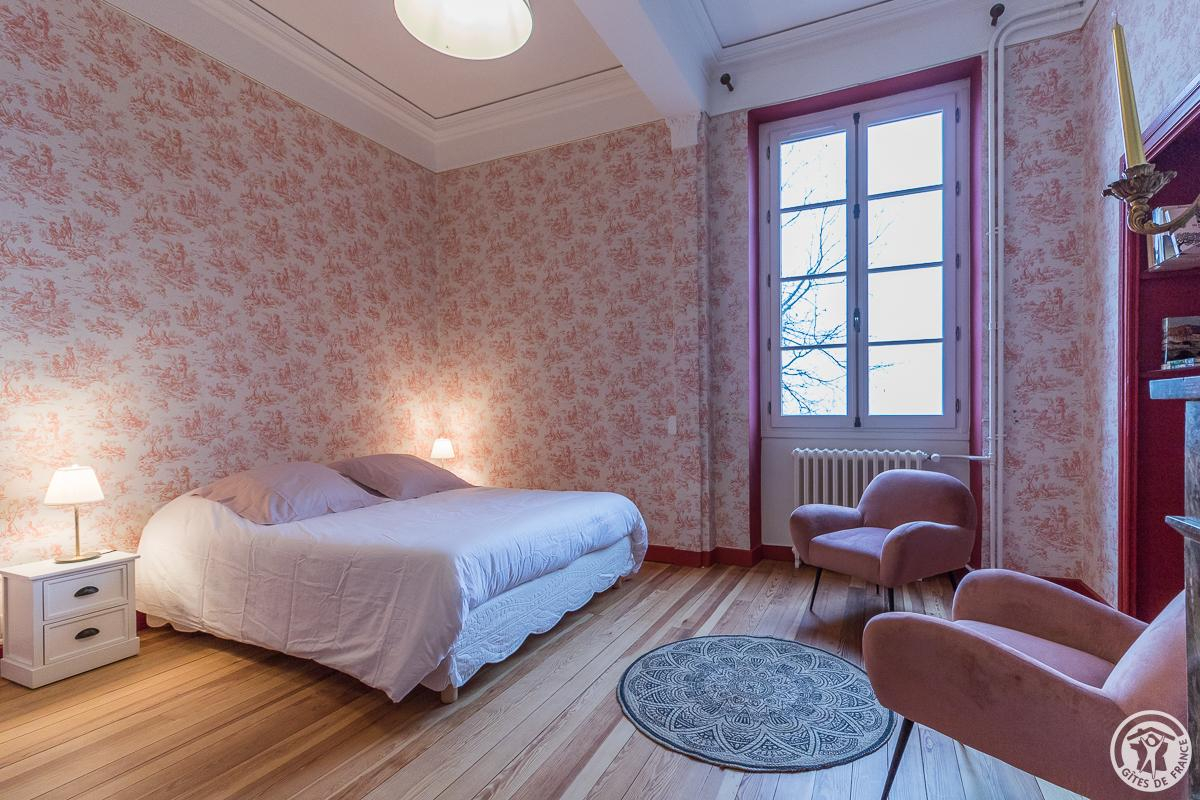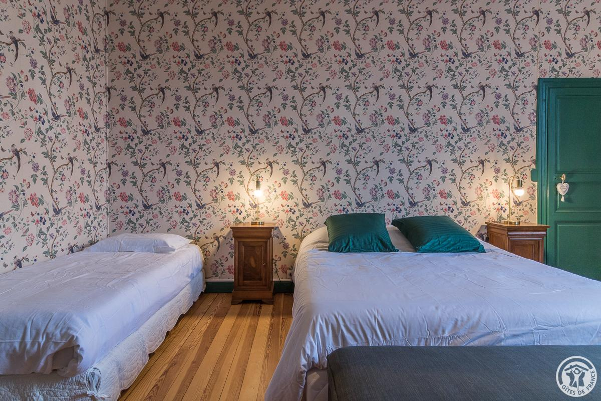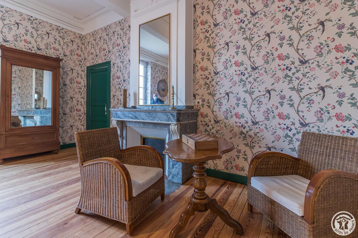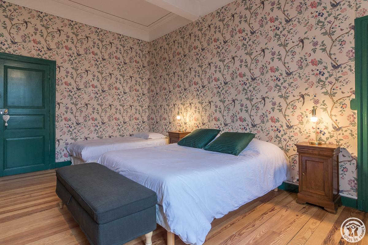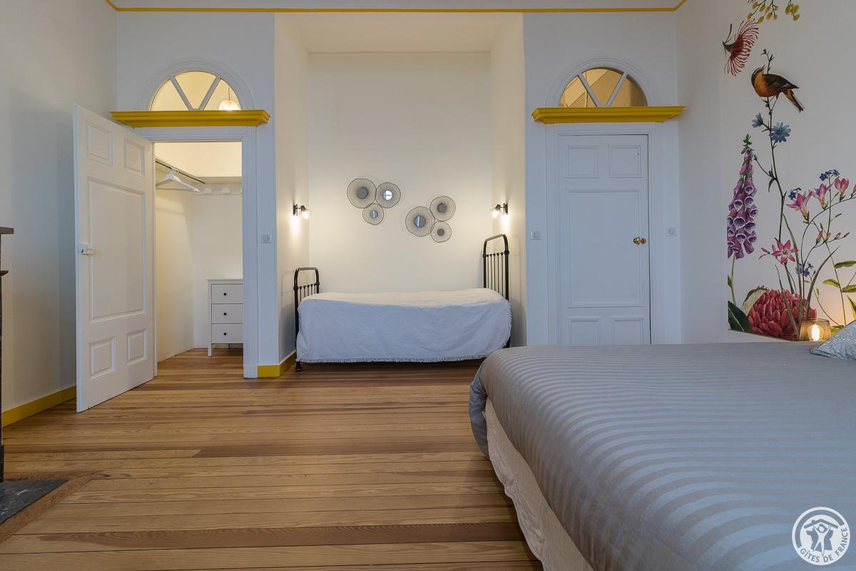 – Arriba, a través de la escalera monumental, una sala de juegos conduce a las 5 habitaciones de huéspedes: Chambre Bleue (1 cama para 2 personas de 160 cm, vestidor, cuarto de ducha, WC separado), Chambre Verte y Chambre Orange clasificadas 3 épis por su capacidad para alojar a 3 personas (1 cama para 2 personas de 160 cm + 1 cama para 1 persona de 90 cm, cuarto de baño/WC para la Verte y cuarto de ducha/WC para la Orange), Chambre Rose (1 cama para 2 personas de 160cm, vestidor, cuarto de ducha/WC), Chambre familiale Noire (1 cama para 2 personas de 160cm) (2 camas para 1 persona de 90cm en una pequeña habitación comunicada), cuarto de ducha con WC separado.
