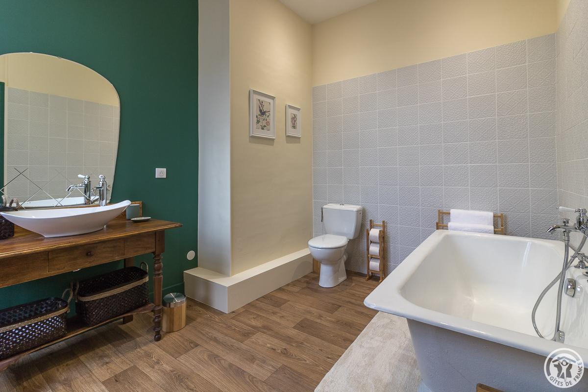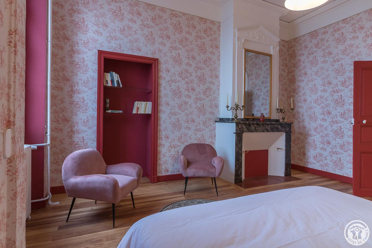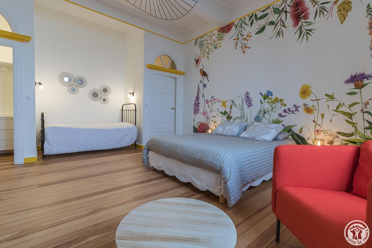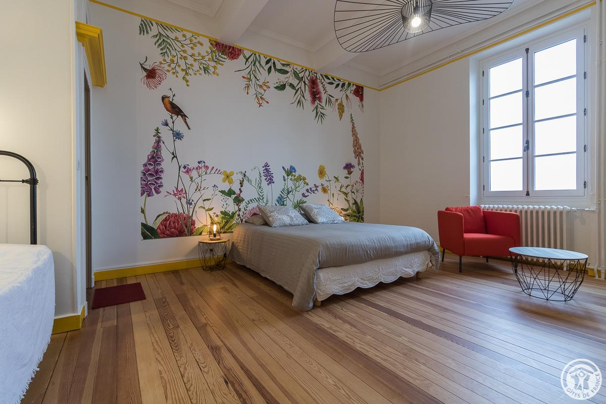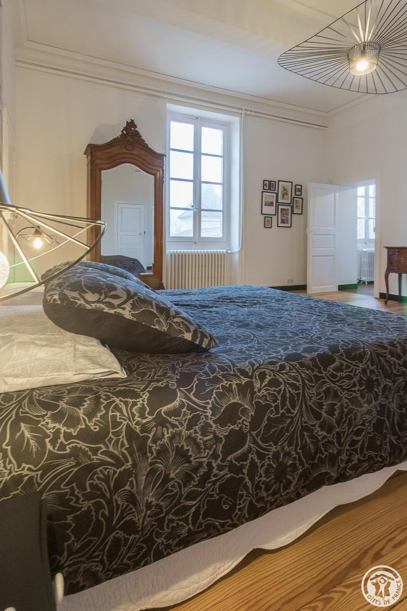 – Arriba, a través de la escalera monumental, una sala de juegos conduce a las 5 habitaciones de huéspedes: Chambre Bleue (1 cama para 2 personas de 160 cm, vestidor, cuarto de ducha, WC separado), Chambre Verte y Chambre Orange clasificadas 3 épis por su capacidad para alojar a 3 personas (1 cama para 2 personas de 160 cm + 1 cama para 1 persona de 90 cm, cuarto de baño/WC para la Verte y cuarto de ducha/WC para la Orange), Chambre Rose (1 cama para 2 personas de 160cm, vestidor, cuarto de ducha/WC), Chambre familiale Noire (1 cama para 2 personas de 160cm) (2 camas para 1 persona de 90cm en una pequeña habitación comunicada), cuarto de ducha con WC separado.