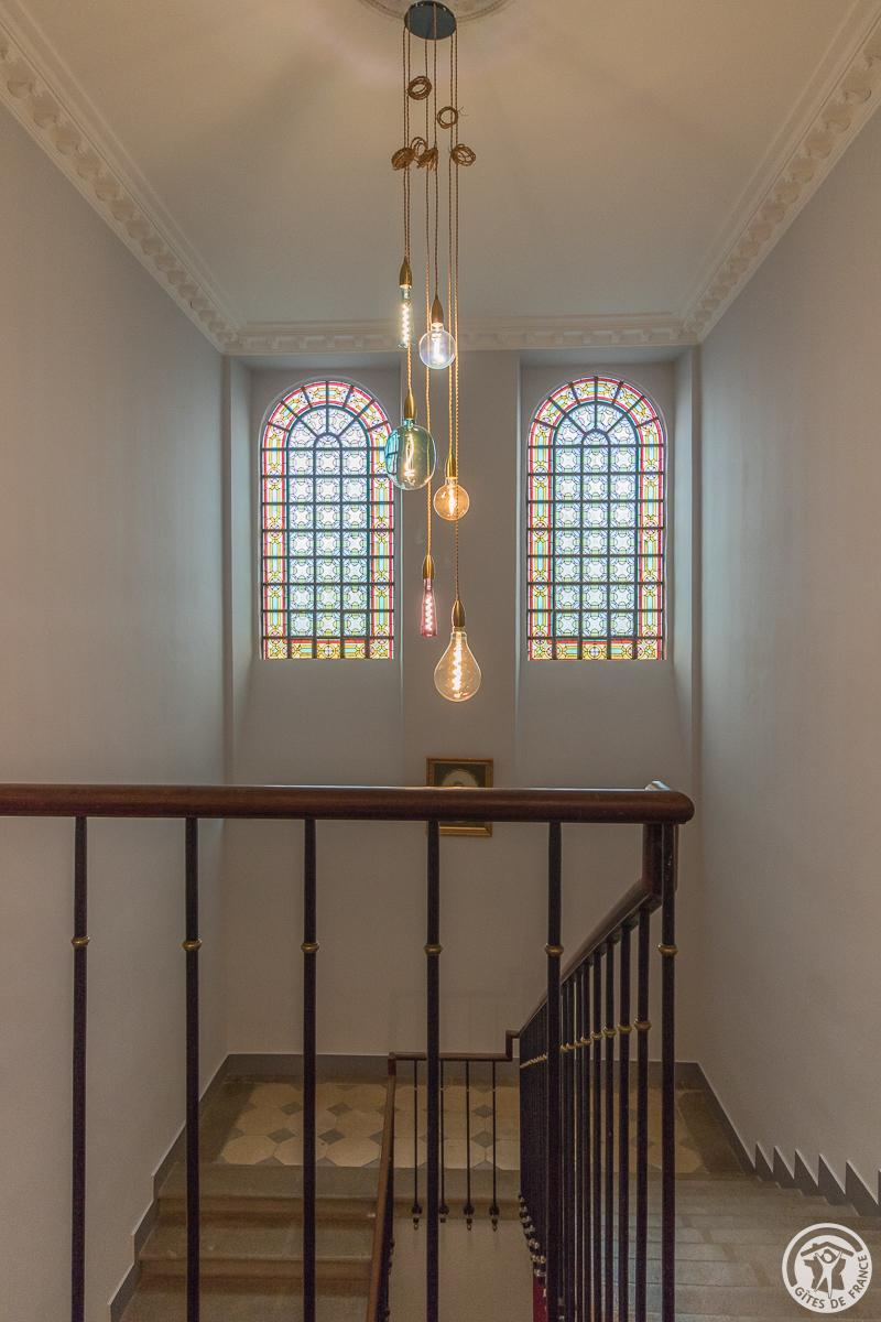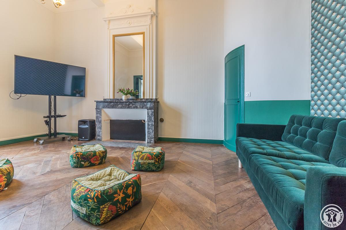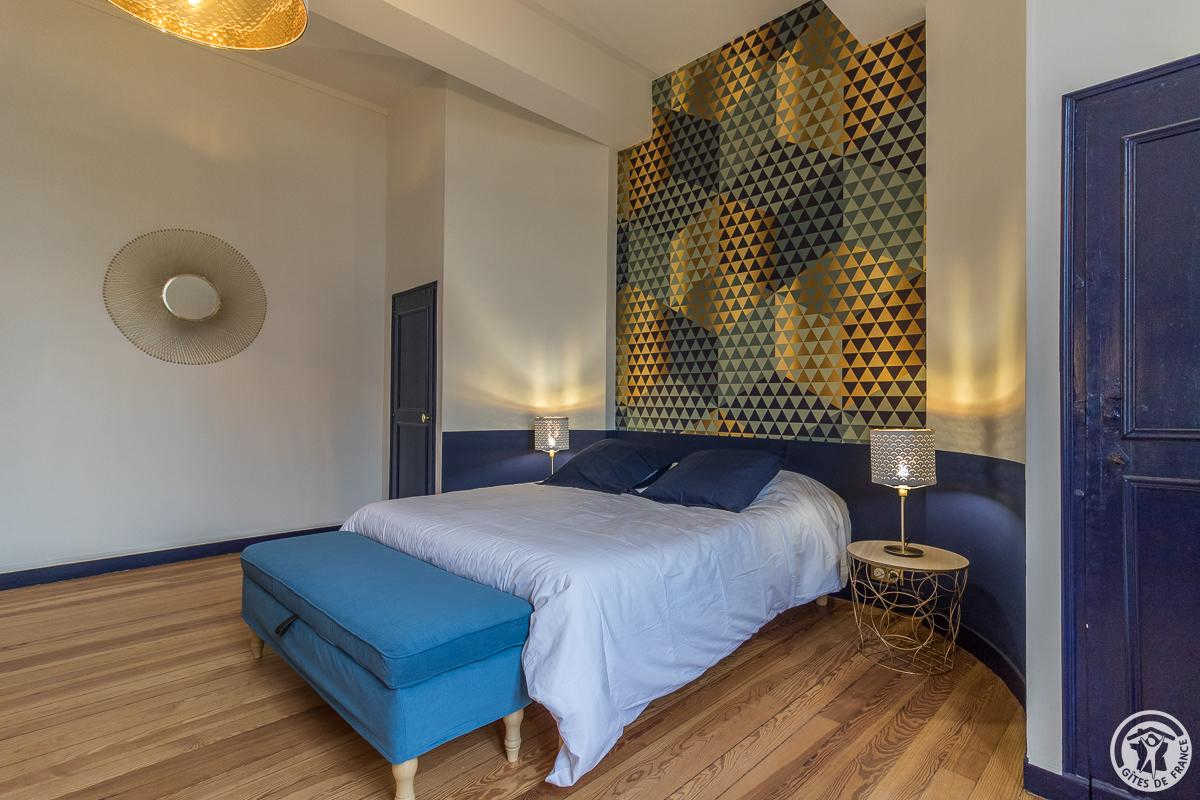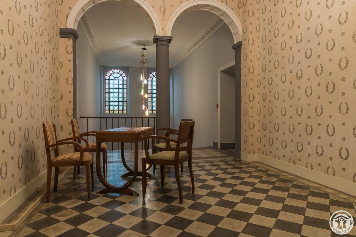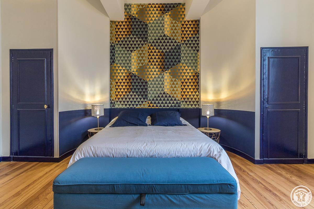 – Arriba, a través de la escalera monumental, una sala de juegos conduce a las 5 habitaciones de huéspedes: Chambre Bleue (1 cama para 2 personas de 160 cm, vestidor, cuarto de ducha, WC separado), Chambre Verte y Chambre Orange clasificadas 3 épis por su capacidad para alojar a 3 personas (1 cama para 2 personas de 160 cm + 1 cama para 1 persona de 90 cm, cuarto de baño/WC para la Verte y cuarto de ducha/WC para la Orange), Chambre Rose (1 cama para 2 personas de 160cm, vestidor, cuarto de ducha/WC), Chambre familiale Noire (1 cama para 2 personas de 160cm) (2 camas para 1 persona de 90cm en una pequeña habitación comunicada), cuarto de ducha con WC separado.