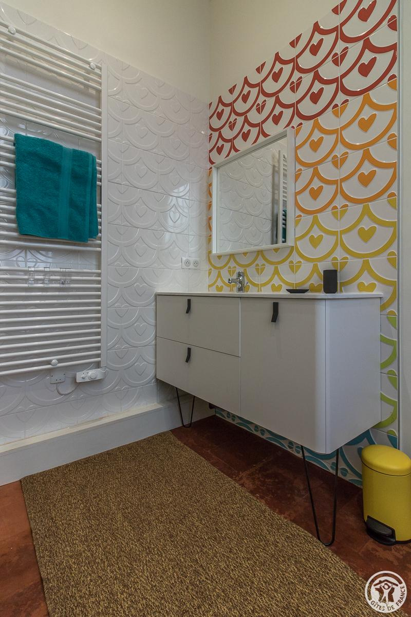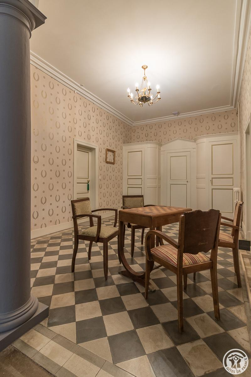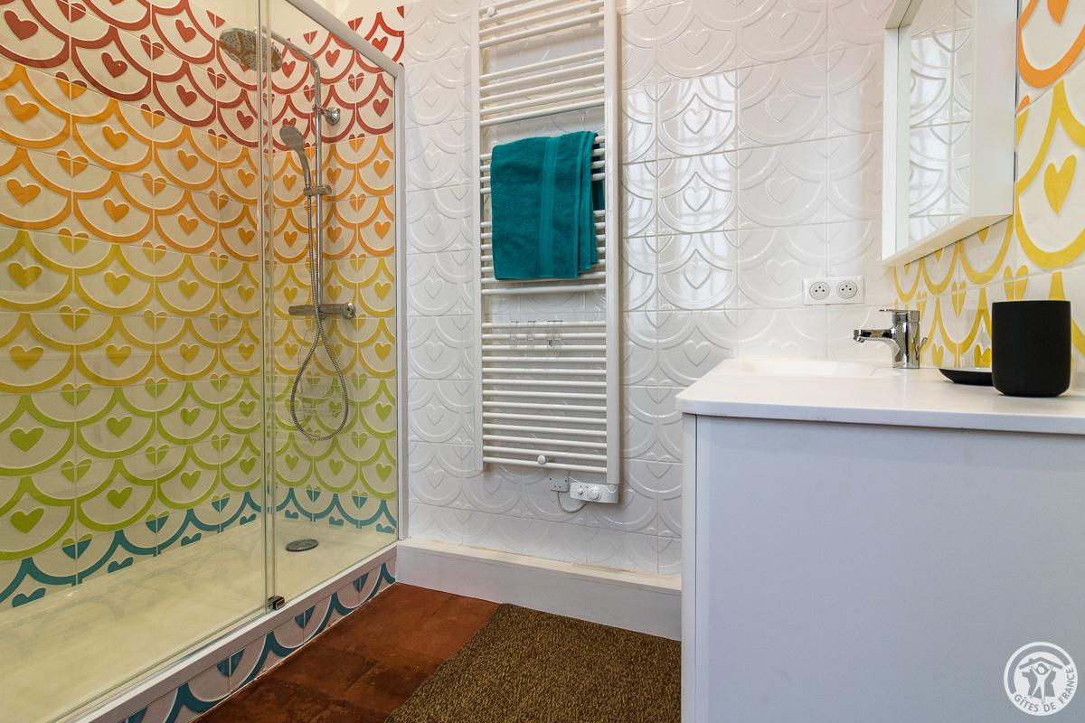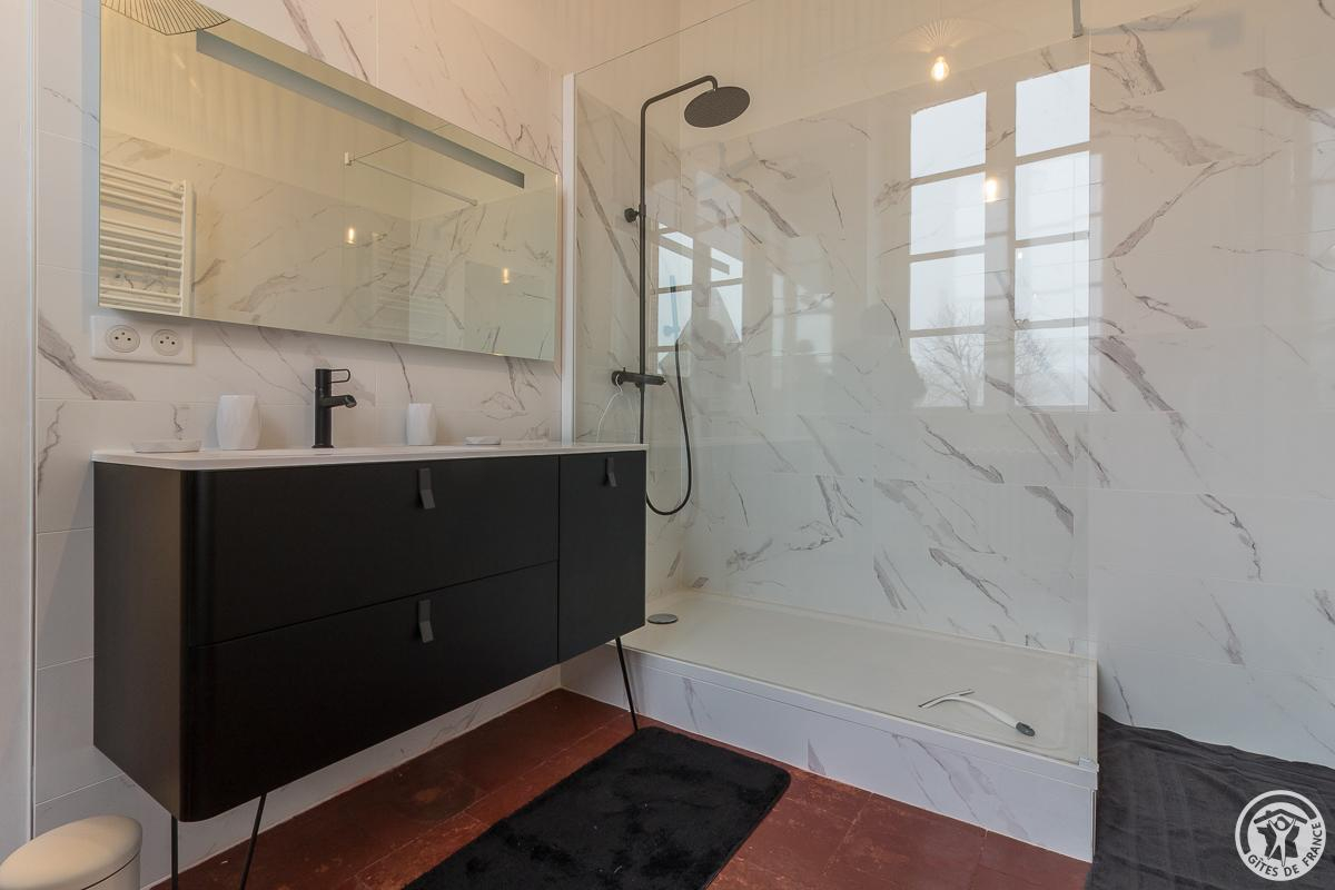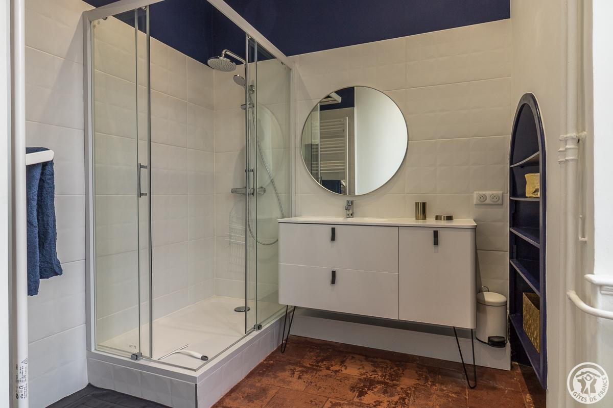 – Arriba, a través de la escalera monumental, una sala de juegos conduce a las 5 habitaciones de huéspedes: Chambre Bleue (1 cama para 2 personas de 160 cm, vestidor, cuarto de ducha, WC separado), Chambre Verte y Chambre Orange clasificadas 3 épis por su capacidad para alojar a 3 personas (1 cama para 2 personas de 160 cm + 1 cama para 1 persona de 90 cm, cuarto de baño/WC para la Verte y cuarto de ducha/WC para la Orange), Chambre Rose (1 cama para 2 personas de 160cm, vestidor, cuarto de ducha/WC), Chambre familiale Noire (1 cama para 2 personas de 160cm) (2 camas para 1 persona de 90cm en una pequeña habitación comunicada), cuarto de ducha con WC separado.
