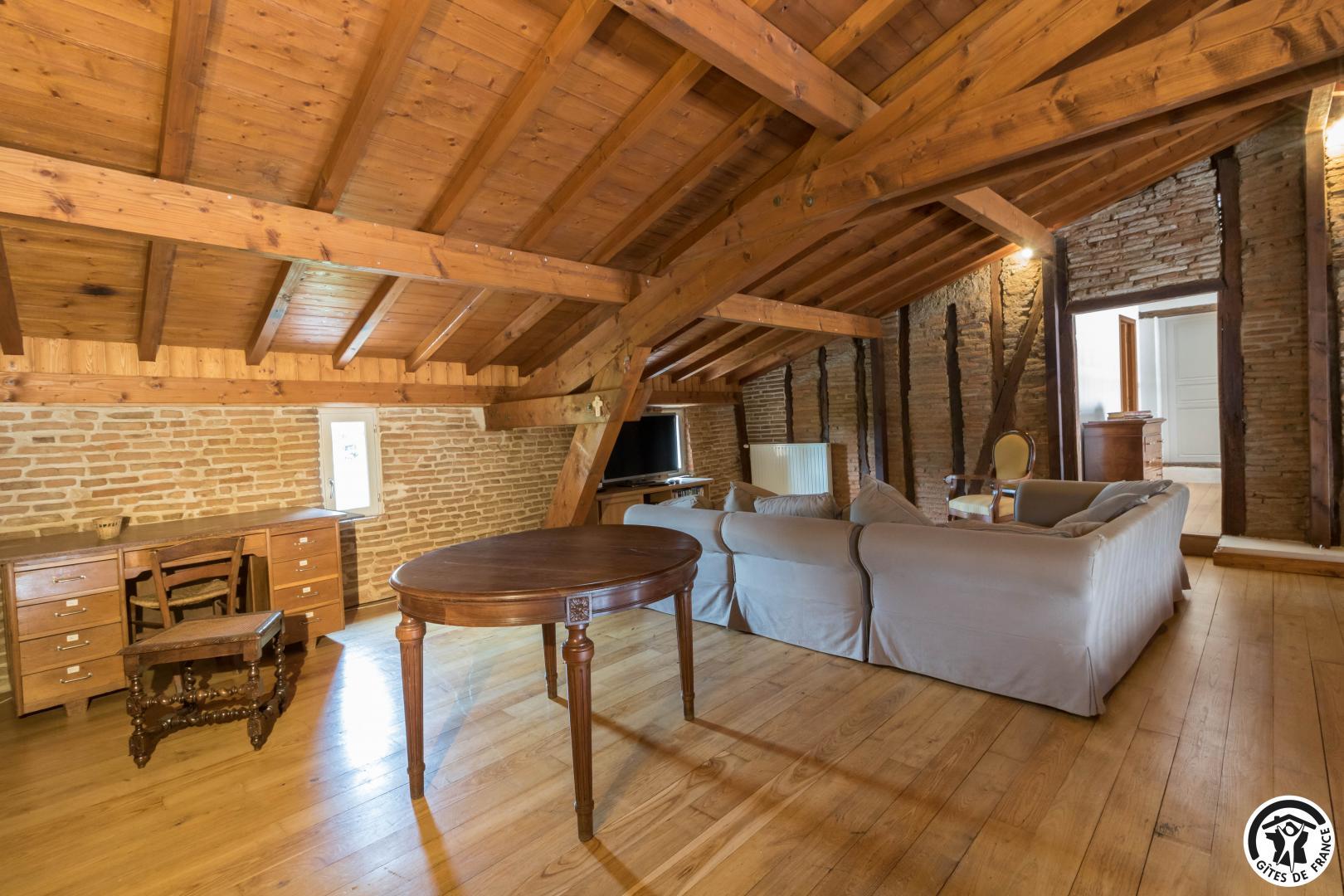 Le gîte du Château de Vignolles vous ouvre les portes d’une aile entièrement restaurée, lovée dans un cadre d’exception. Ici, la noblesse des pierres et des briques toulousaines se marie à la chaleur des poutres apparentes, révélant l’âme authentique d’une demeure transmise par la famille de la propriétaire depuis des générations. Piscine scintillante, parc verdoyant et volumes lumineux : tout a été pensé pour accueillir confortablement 12 voyageurs dans une atmosphère raffinée et conviviale.