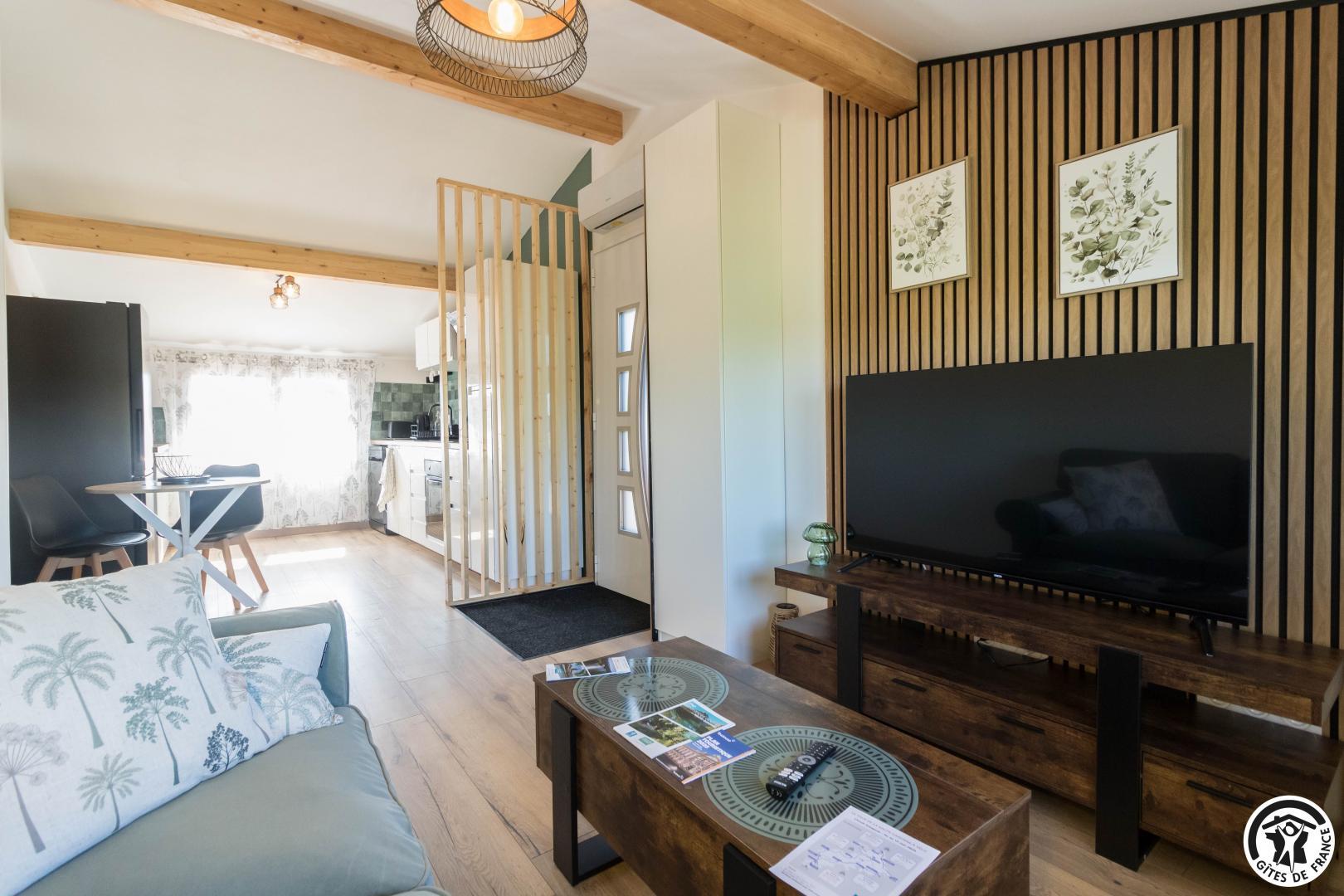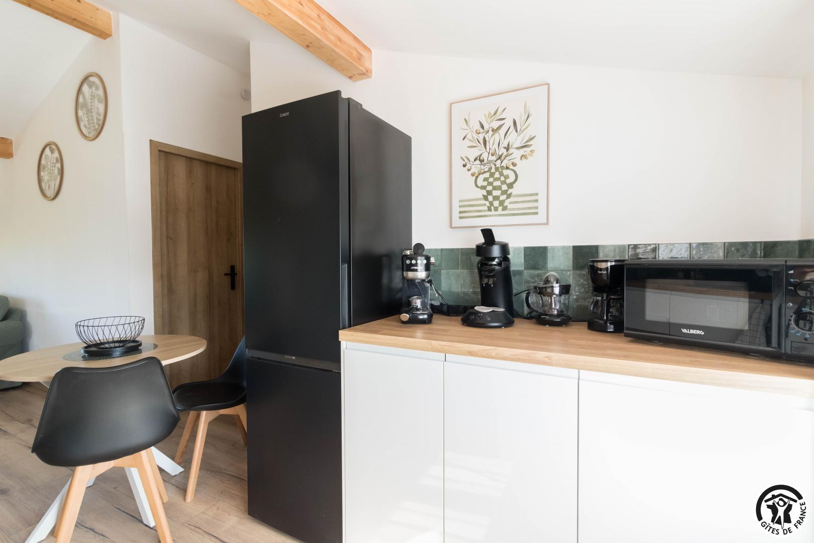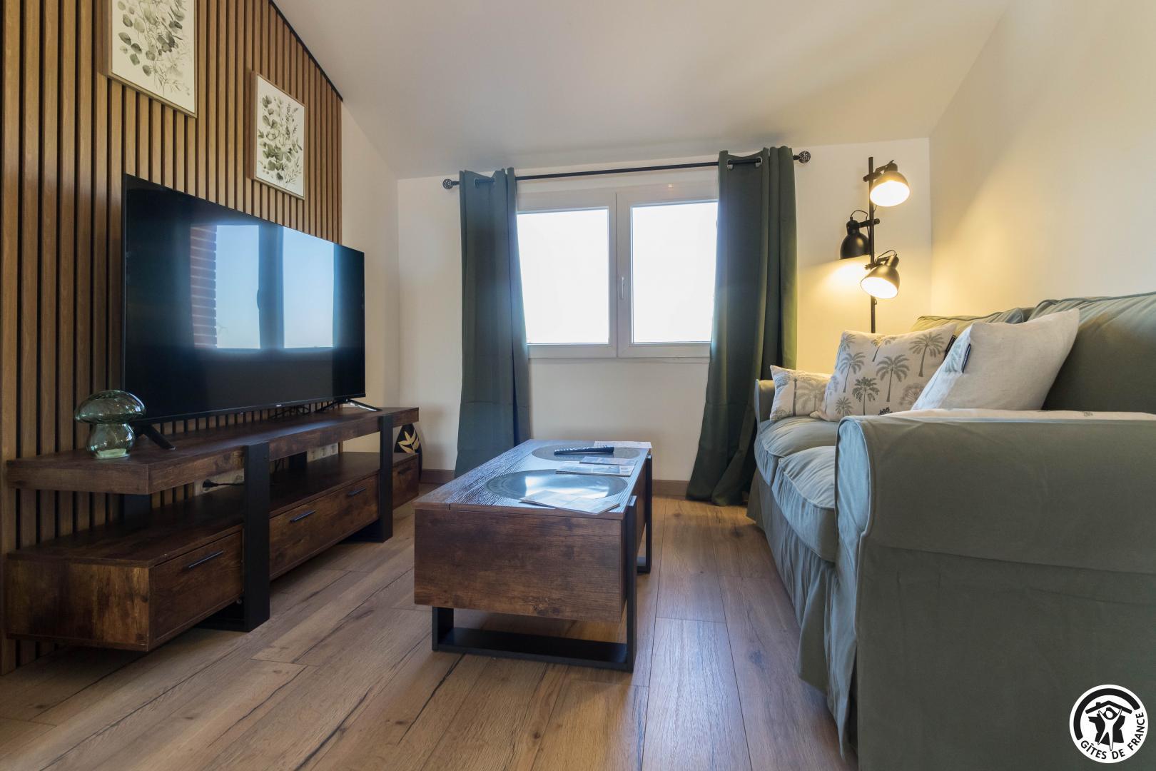 Pensé comme un véritable nid douillet, ce charmant appartement aménagé au-dessus d’un garage et de l’espace jacuzzi offre un cadre intime et chaleureux, idéal pour un séjour en amoureux ou un déplacement professionnel en quête de sérénité. Dès votre arrivée, vous apprécierez son séjour confortable baigné de lumière, prolongé par une cuisine entièrement équipée où rien ne manque pour cuisiner comme à la maison.