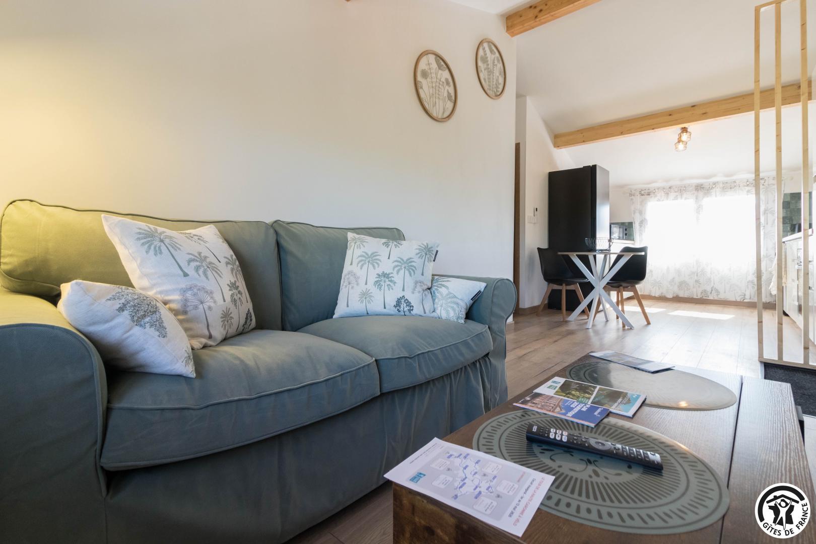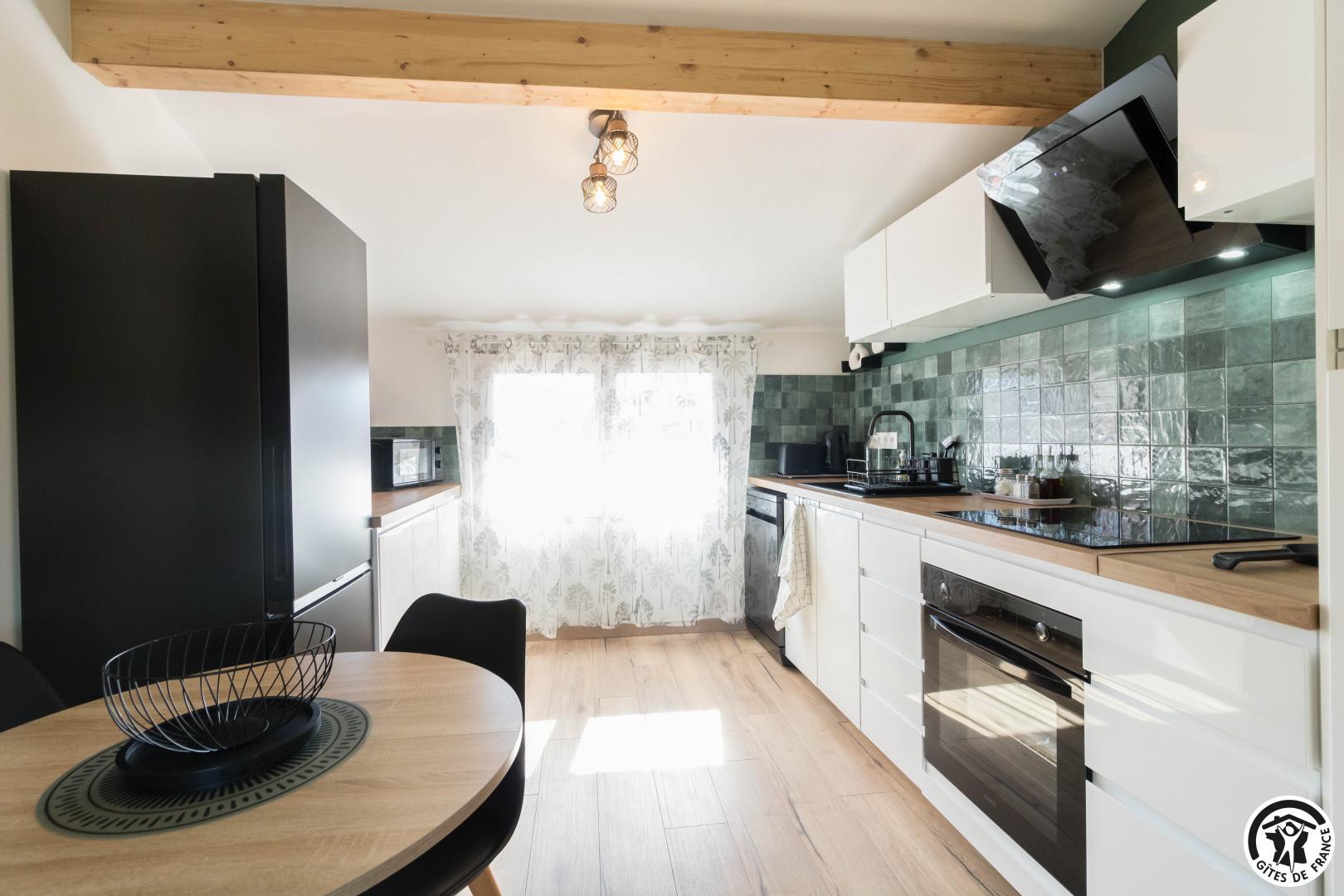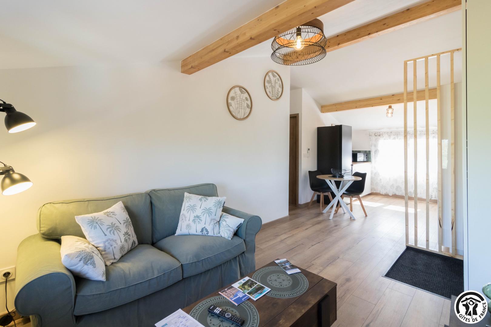 Pensé comme un véritable nid douillet, ce charmant appartement aménagé au-dessus d’un garage et de l’espace jacuzzi offre un cadre intime et chaleureux, idéal pour un séjour en amoureux ou un déplacement professionnel en quête de sérénité. Dès votre arrivée, vous apprécierez son séjour confortable baigné de lumière, prolongé par une cuisine entièrement équipée où rien ne manque pour cuisiner comme à la maison.