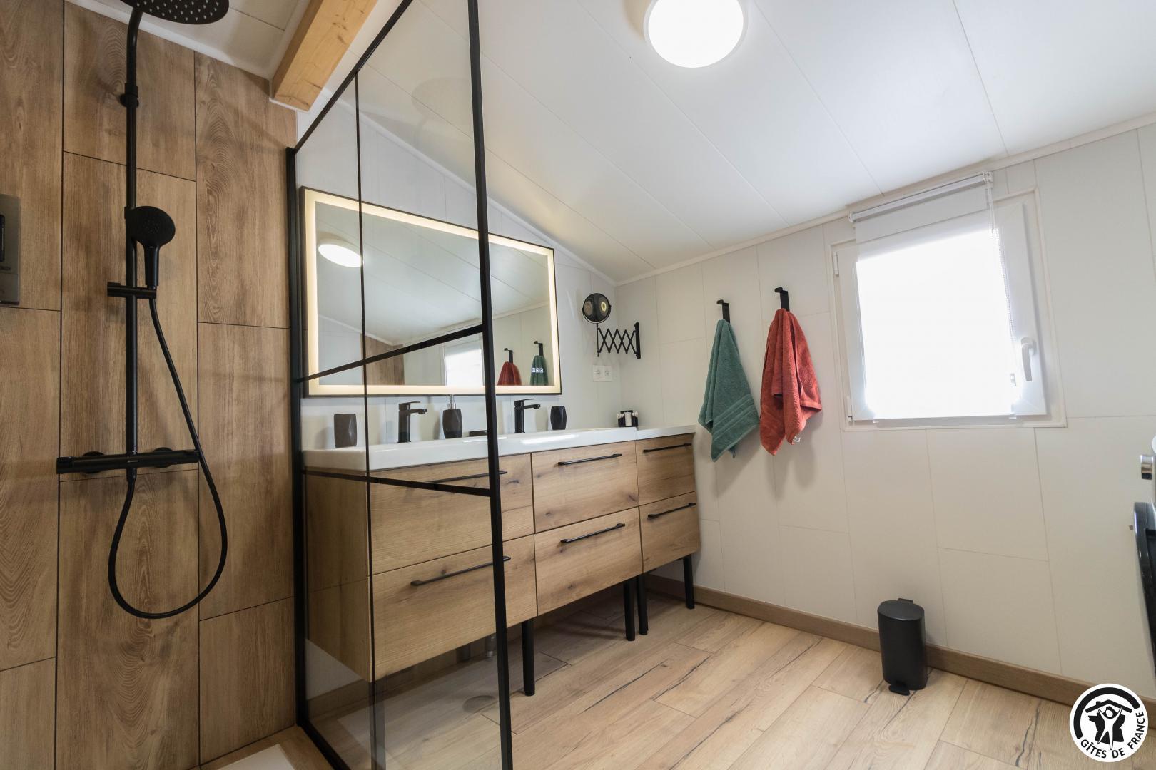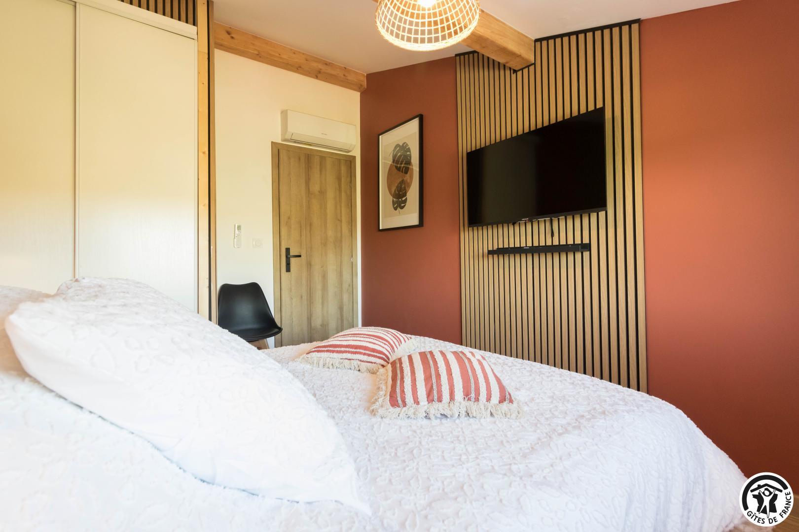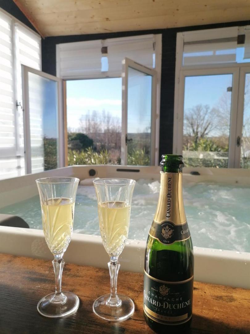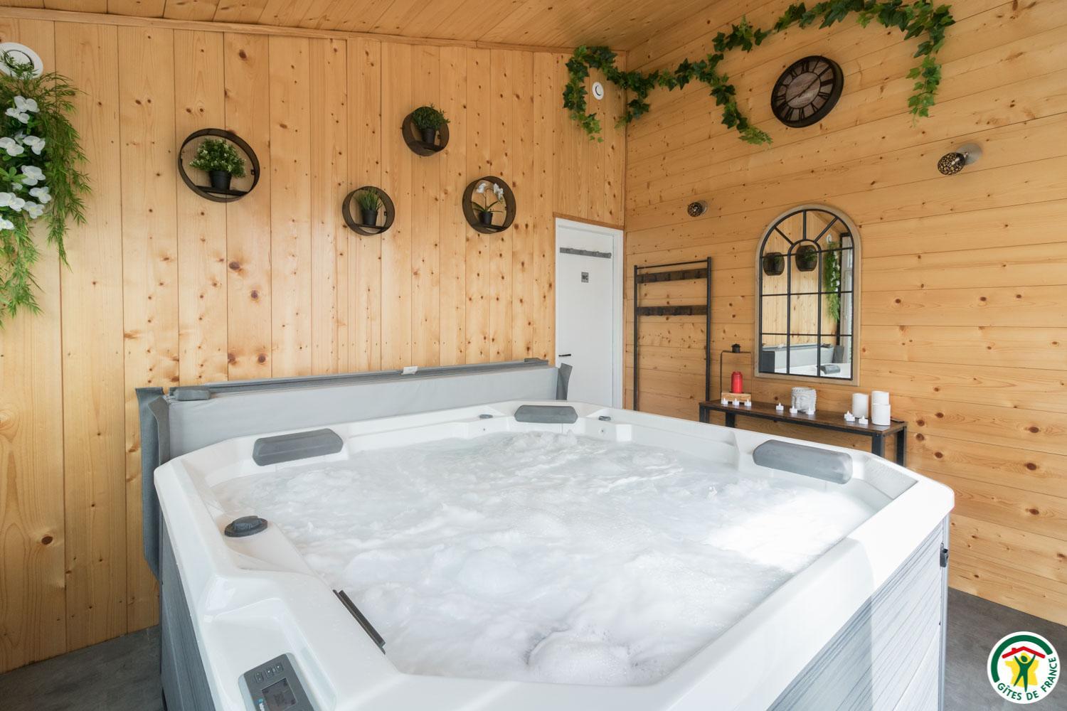 À l’extérieur, l’expérience se prolonge avec un accès à une piscine et un jacuzzi à partager (avec les clients de l’autre gîte, ceux des chambres d’hôtes et les propriétaires), parfaits pour se détendre après une journée de découvertes. Le grand jardin invite à la flânerie, tandis que la petite ferme (oies, poules, lapins, chat et chien) sur place apporte une touche authentique et bucolique, idéale pour se reconnecter à l’essentiel.