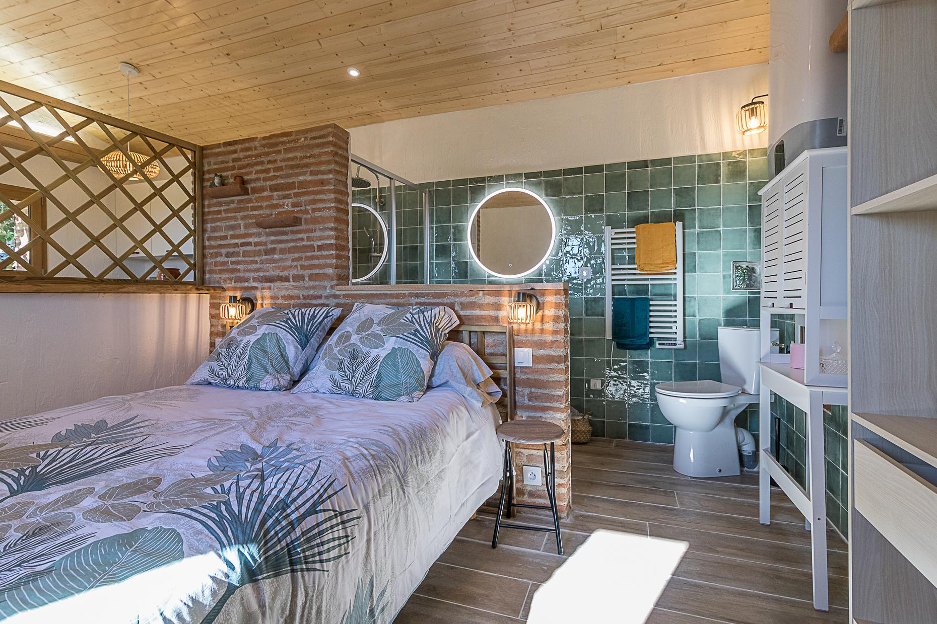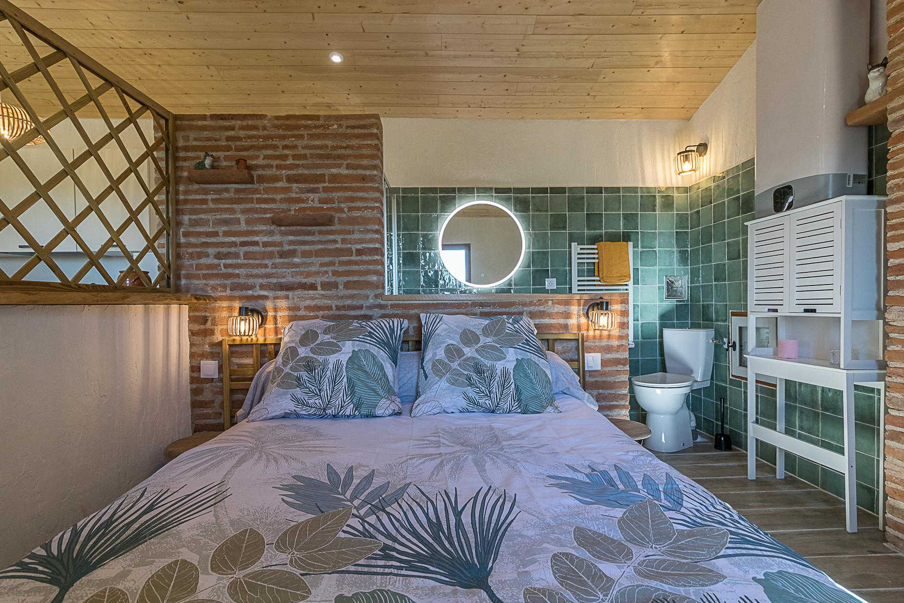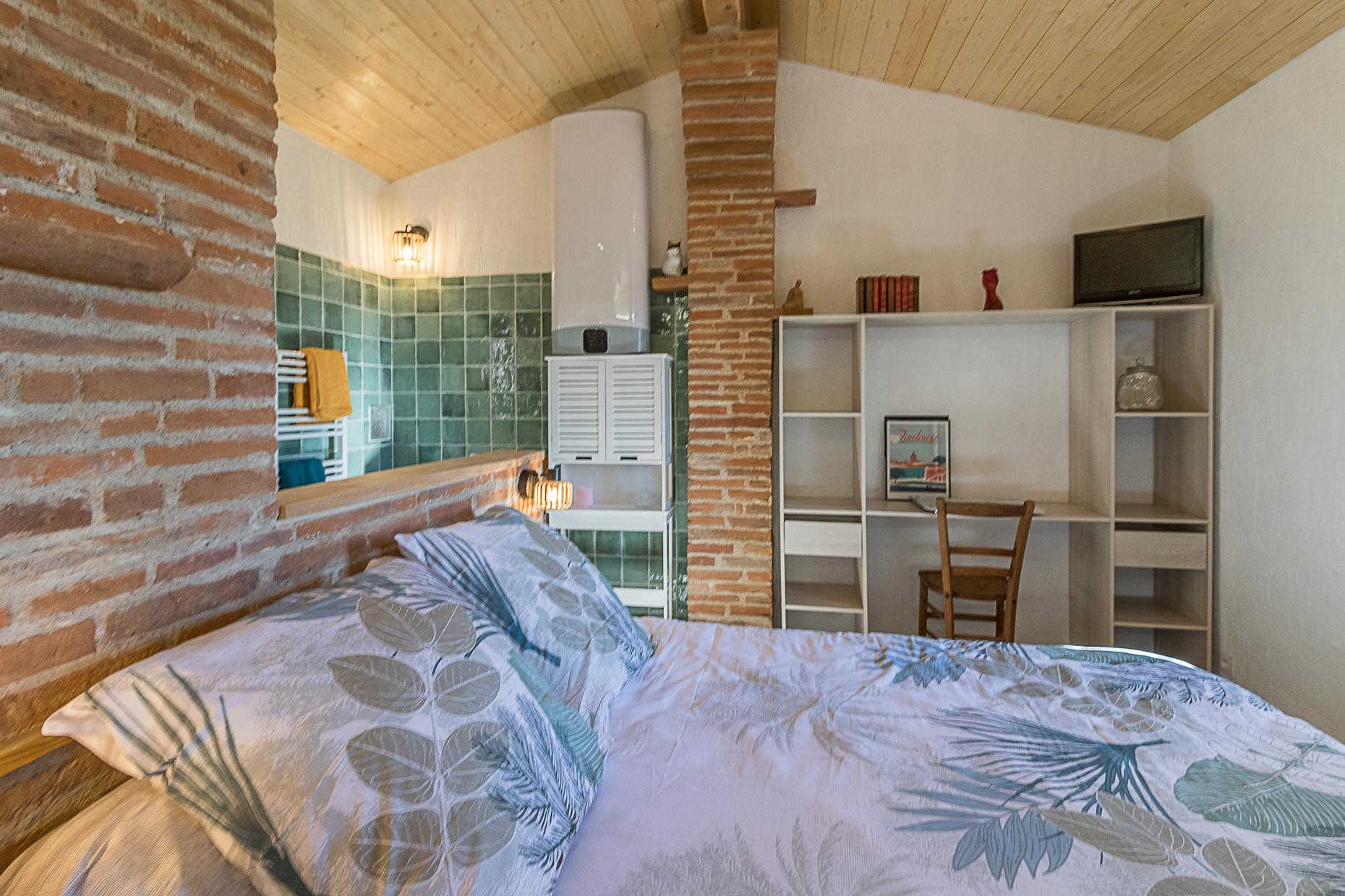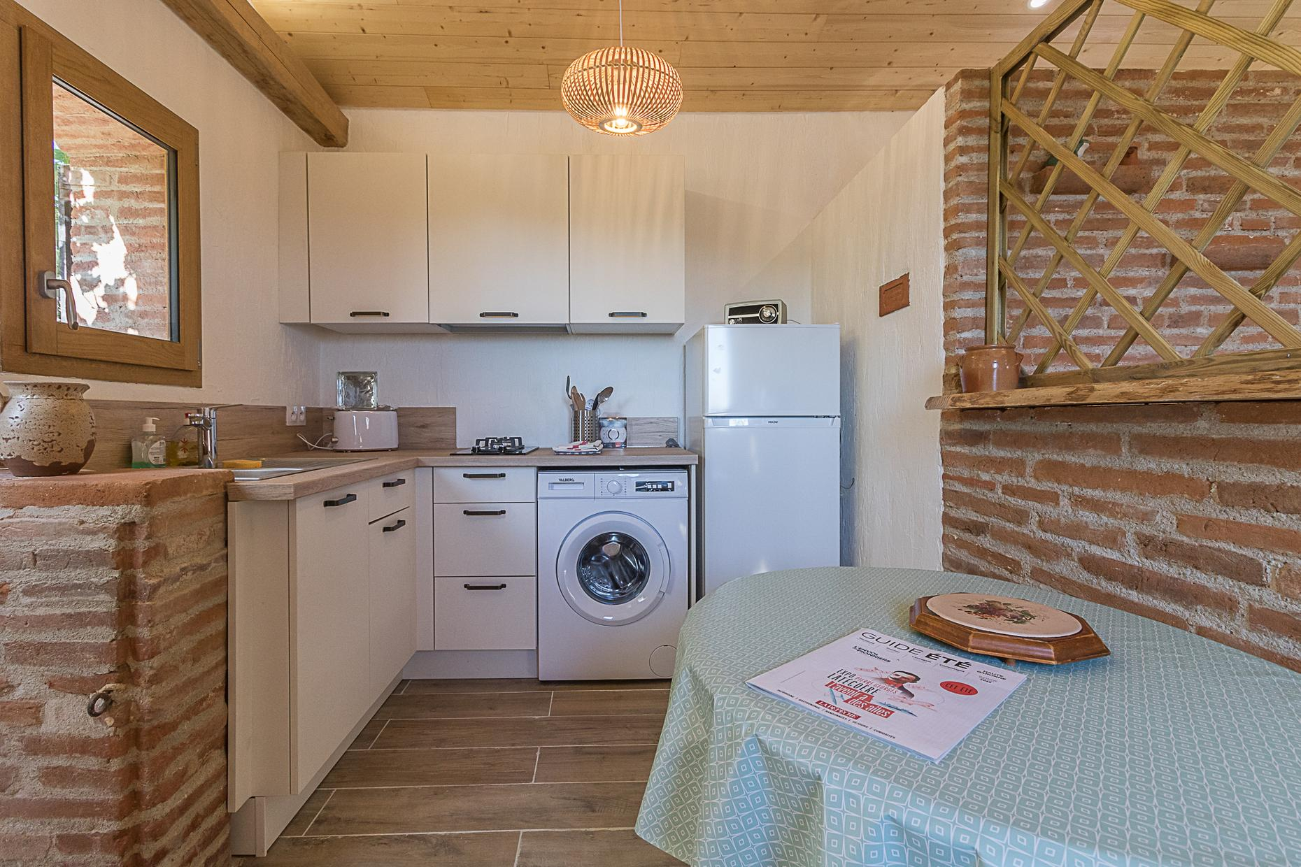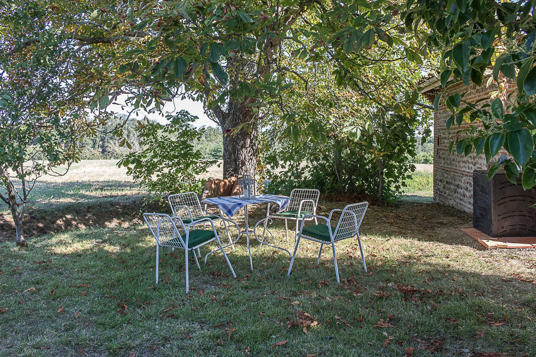 Joli gîte pour deux personnes, tout confort, dans une petite maison indépendante sur la propriété du Tarda, tout près d'Auterive et à 40mn au sud de Toulouse. Jardin arboré, piscine commune. Tarifs tout compris !