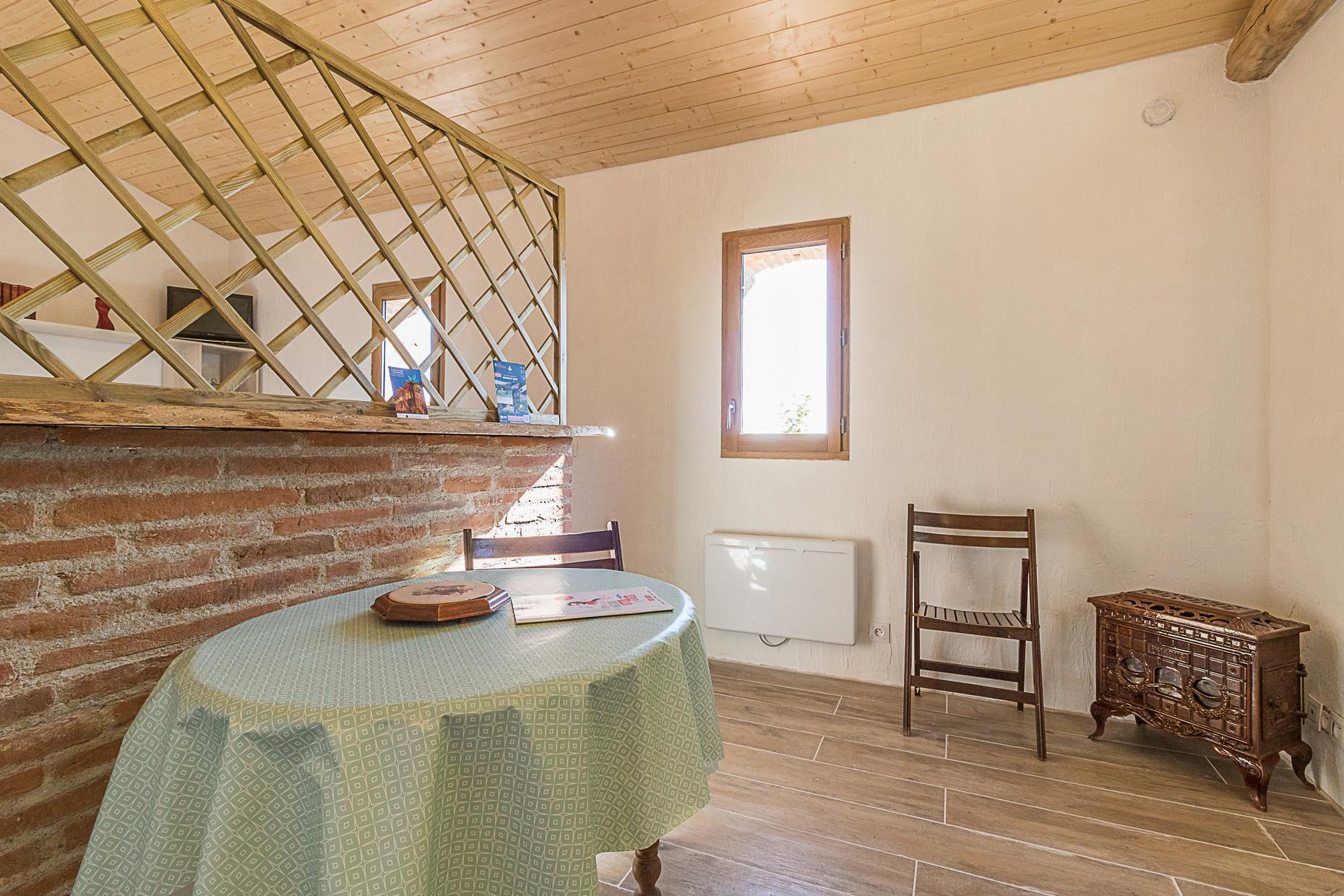 « Le Cabanon » est un petit gîte aménagé dans l’ancien atelier du propriétaire. Situé en limite de propriété, au calme, sans vis-à-vis, il est tourné vers les champs. Vous pourrez cependant profiter des merveilleux atouts qu’offre le Domaine du Tarda, qui accueille également dans la maison principale une chambre d’hôtes familiale. Ce joli bâtiment aux murs de briques et de galets, n’est en effet qu’à quelques mètres de la piscine au sel (ouverte de juin à octobre), du coin-barbecue, des jeux d’enfants (portique) ou du boulodrome. Un salon de jardin privatif prend place sous les arbres, procurant un ombrage bienvenu en été. Aire de stationnement. Animaux non admis.