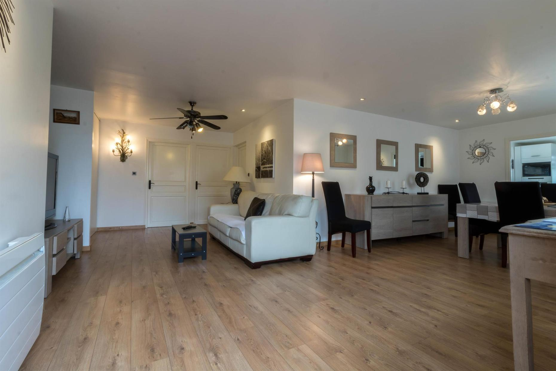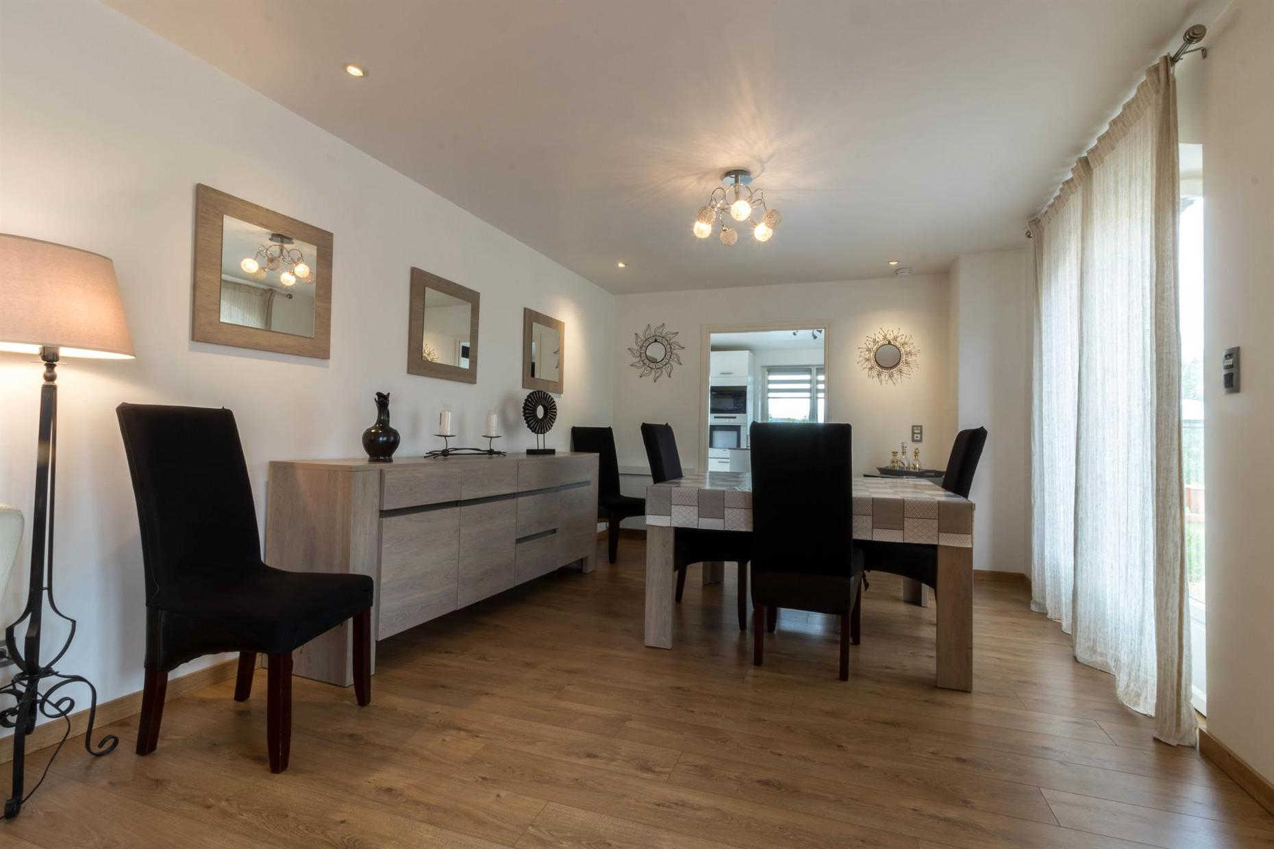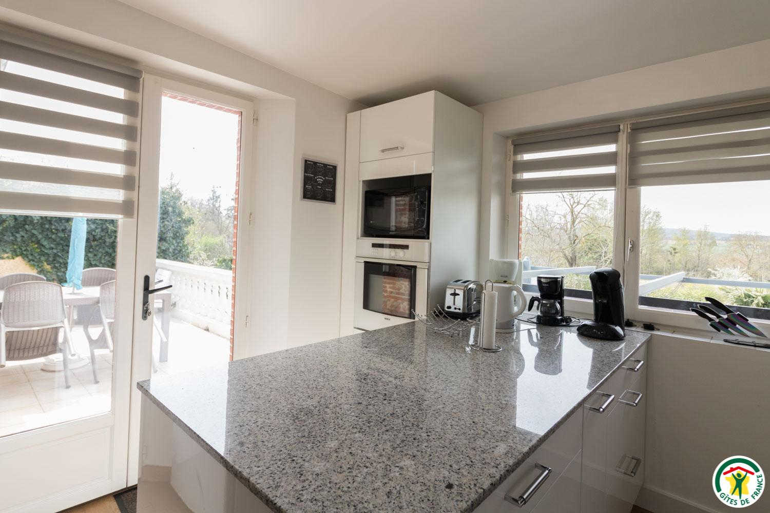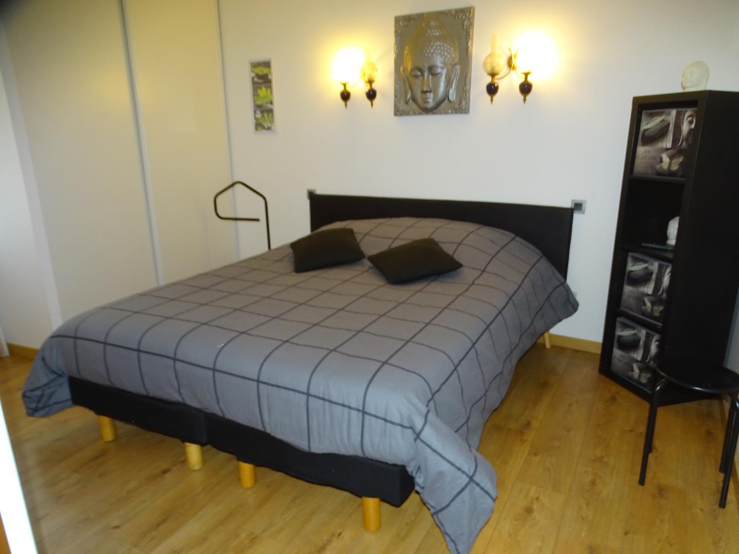 Gîte de plain-pied de 90m2 : vaste séjour de 53m2 composé d’un salon avec TV écran plat de 200cm (lecteur DVD) et un canapé (climatisation), d’une salle à manger et d’une cuisine. La cuisine donne sur la terrasse (salon de jardin et salon de détente) où vous profiterez d’une vue exceptionnelle sur la piscine, le SPA (en supplément) et le jardin. Depuis le séjour, vous aurez accès à la chambre Zen avec 2 lits simples en 80*200cm, jumelables en 1 lit double en 160*200. Une deuxième chambre, la Campagne (1 lit pour 2 personnes en 160*200cm), est accessible depuis la chambre Zen ou la salle d’eau. WC indépendant. Sèche-linge chez la propriétaire.