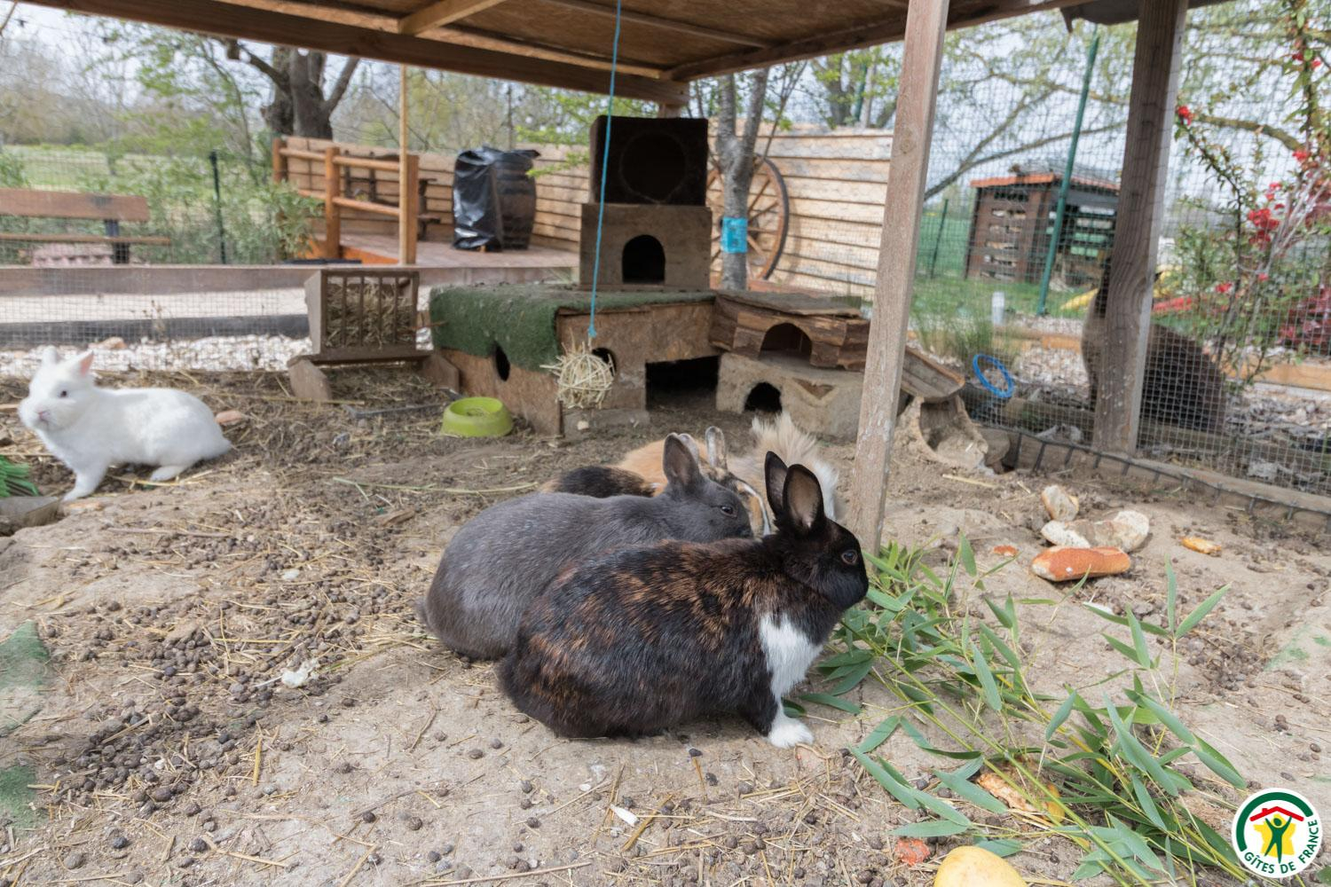 Petite ferme maison : chienne, chat, poules, lapins nains.