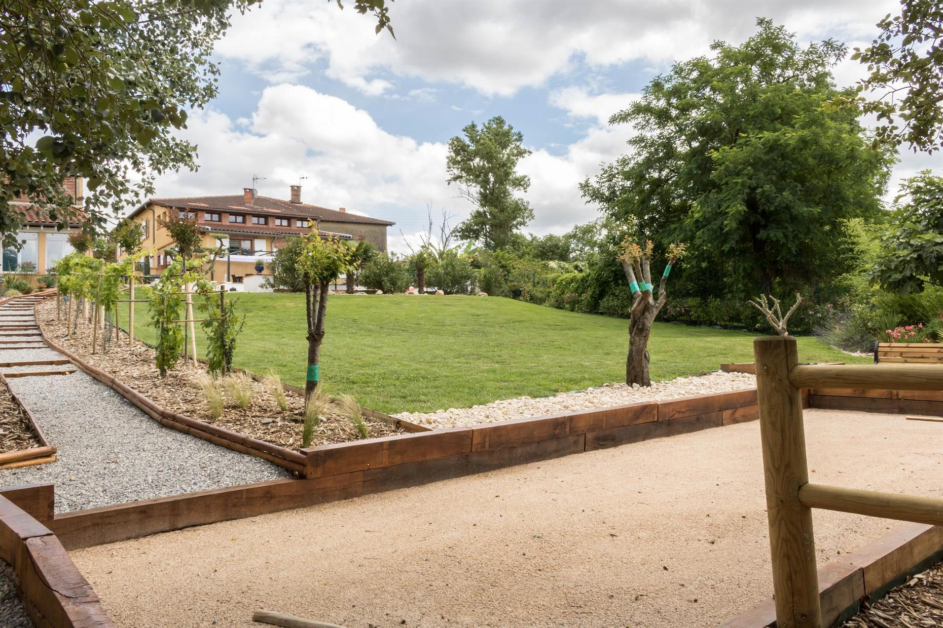 A l’extérieur, vous pourrez garer votre véhicule dans la cour (grand portail électrique fermé), petit portillon piéton ouvert et profiter d’une petite terrasse fermée devant le gîte et d’un grand jardin avec piscine (en commun avec les propriétaires et les 2 chambres d’hôtes), salon de détente et terrain de pétanque. Les propriétaires ont une terrasse privative au-dessus de la piscine. Un spa privatif de haute qualité se situe dans une pièce indépendante au gîte et accessible en supplément pour des créneaux sur réservation de 1h ou 2h.